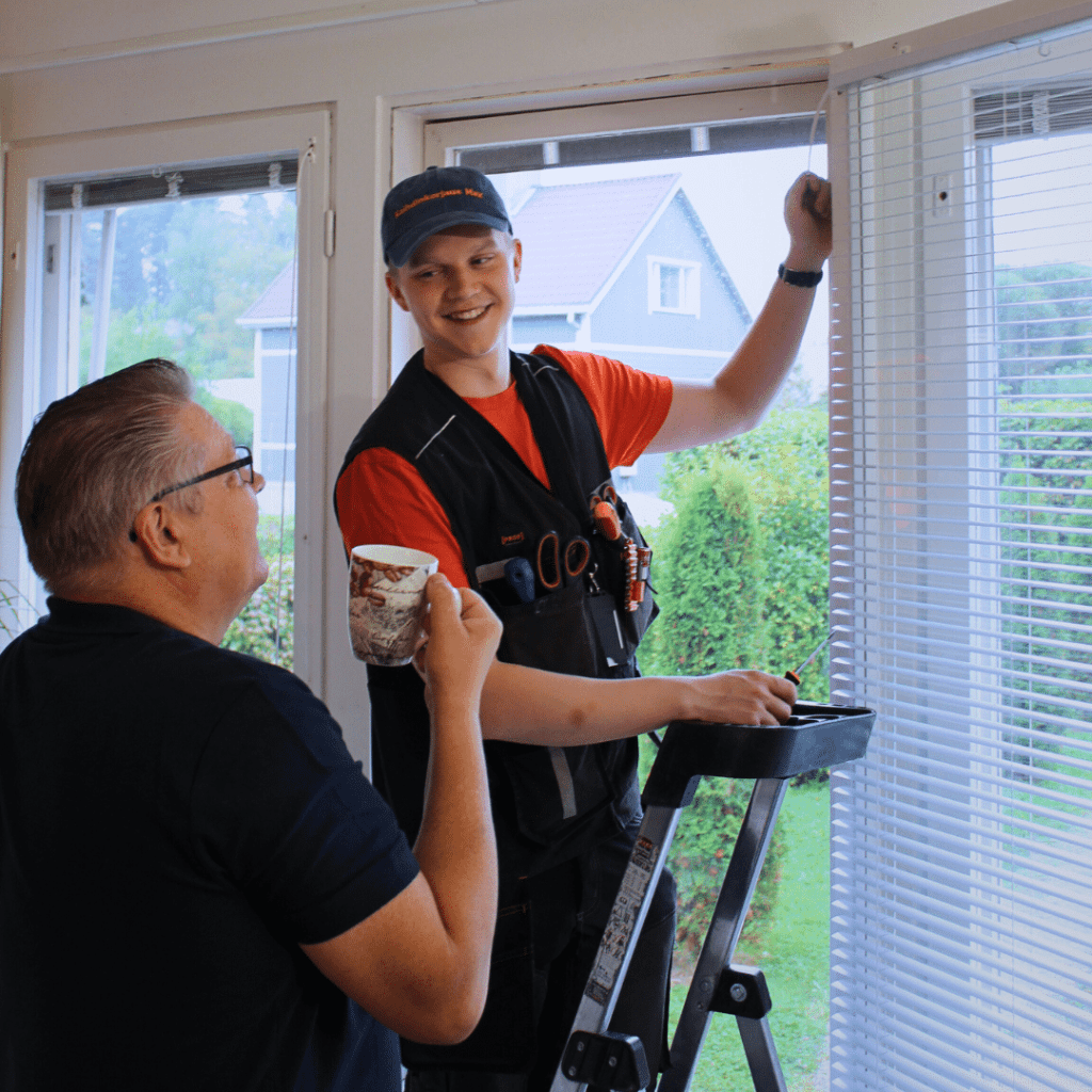 Saavumme sovittuna päivänä ja korjaamme kaihtimet.
